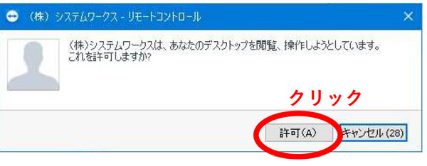 画面の背景が黒くなり、システムワークス担当スタッフによる、マウス・キーボードの操作が可能となります。