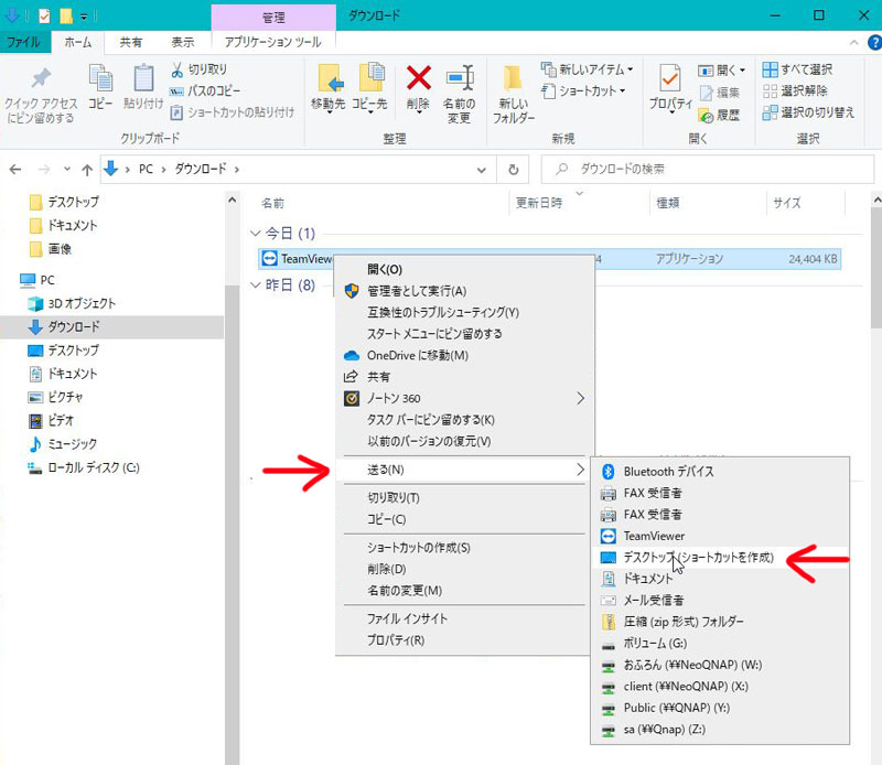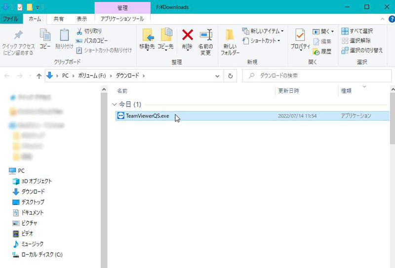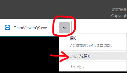 ダウンロードフォルダにある「TeamViewerQS」ファイルをクリックして